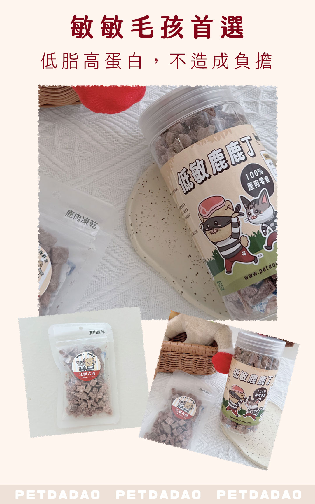 首頁 商店 凍乾零食 低敏鹿鹿丁(鹿肉凍乾) 低敏鹿鹿丁(鹿肉凍乾)NT$80 – NT$320價格範圍:NT$80 到 NT$320嚴選CAS台灣溫體鹿硬度:★☆☆☆☆寵物凍乾推薦犬貓皆可食用無添加、無防腐劑包裝請選取一個選項罐裝55g旅行包12g罐裝55g旅行包12g清除 低敏鹿鹿丁(鹿肉凍乾) 數量 加入購物車 立即了解 ⊝ 出貨小提醒 ×⚠️出貨提醒 我們會備有少量現貨 零食若無現貨製作天數約 3~7 天 (不含配送天數) 如需確認製作進度歡迎加入官方 LINE 與我們聯繫 加入官方 LINE 詢問 運費常溫零食 $60冷凍鮮食 $150全館滿 NT$1,000 即可享有免運 描述 額外資訊 評價 (0) 包裝罐裝55g, 旅行包12g 商品評價目前沒有評價。 搶先評價 “低敏鹿鹿丁(鹿肉凍乾)”取消回覆發佈留言必須填寫的電子郵件地址不會公開。 必填欄位標示為 *您的評分 *評分…完美很好一般不錯很差 名稱 *電子郵件 *您的評價 * 在瀏覽器中儲存顯示名稱、電子郵件地址及個人網站網址,以供下次發佈留言時使用。送出 相關商品咕咕仙貝 NT$50 – NT$150價格範圍:NT$50 到 NT$150選擇規格 此產品有多種款式。 可在產品頁面選擇選項 卡滋跳跳蝦(蝦仁凍乾) NT$80 – NT$250價格範圍:NT$80 到 NT$250選擇規格 此產品有多種款式。 可在產品頁面選擇選項 已售完𝙉𝙀𝙒 花椰菜菜凍乾 NT$180 原始價格:NT$180。NT$150目前價格:NT$150。選擇規格 此產品有多種款式。 可在產品頁面選擇選項