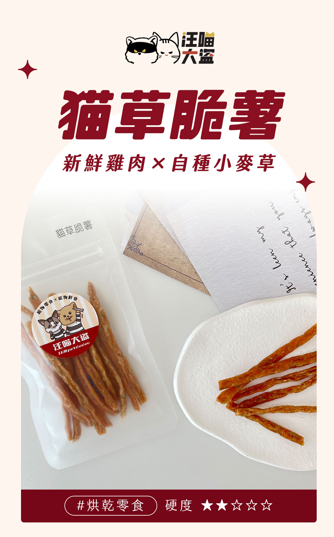 首頁 商店 咬咬控的最愛 貓草脆薯 貓草脆薯NT$50 – NT$250價格範圍:NT$50 到 NT$250新鮮雞肉佐貓草硬度:★★☆☆☆犬貓皆可食用手作寵物零食,堅持低溫慢烘12小時無添加、無防腐劑※貓草是我們自己新鮮種植,如無現貨需要等1~2個禮拜,可先至官方LINE詢問包裝請選取一個選項小包13g大包45g罐裝100g小包13g大包45g罐裝100g清除 貓草脆薯 數量 加入購物車 立即了解 ⊝ 出貨小提醒 ×⚠️出貨提醒 我們會備有少量現貨 零食若無現貨製作天數約 3~7 天 (不含配送天數) 如需確認製作進度歡迎加入官方 LINE 與我們聯繫 加入官方 LINE 詢問 運費常溫零食 $60冷凍鮮食 $150全館滿 NT$1,000 即可享有免運 描述 額外資訊 評價 (0) 包裝小包13g, 大包45g, 罐裝100g 商品評價目前沒有評價。 搶先評價 “貓草脆薯”取消回覆發佈留言必須填寫的電子郵件地址不會公開。 必填欄位標示為 *您的評分 *評分…完美很好一般不錯很差 名稱 *電子郵件 *您的評價 * 在瀏覽器中儲存顯示名稱、電子郵件地址及個人網站網址,以供下次發佈留言時使用。送出 相關商品燕麥波堤 NT$50 – NT$300價格範圍:NT$50 到 NT$300選擇規格 此產品有多種款式。 可在產品頁面選擇選項 雞肉鬆 NT$80 – NT$199價格範圍:NT$80 到 NT$199選擇規格 此產品有多種款式。 可在產品頁面選擇選項 咕咕雞柳條 NT$150 – NT$250價格範圍:NT$150 到 NT$250選擇規格 此產品有多種款式。 可在產品頁面選擇選項